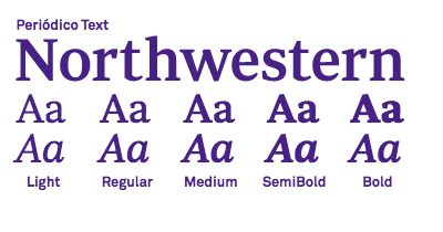 Desktop font licenses are reserved for employees whose position descriptions delegate them as primary communication employees who produce design work. Individuals with the license should not share the files; they can only be used in projects for Northwestern University. To obtain a desktop license for Campton, Periodico or Akkurat Pro, please contact webmaster@northwestern.edu.