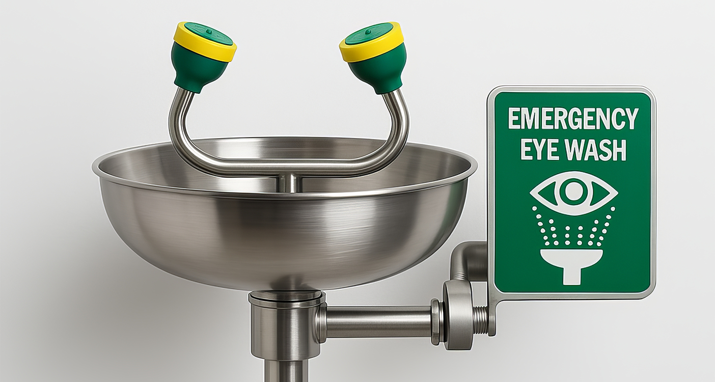 - Eyewash and safety showers for chemical splashes and particle exposures (e.g., dust)