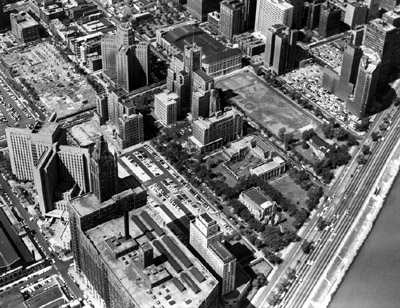 ![]() Aerial view of Chicago campus, facing northwest, 1955.