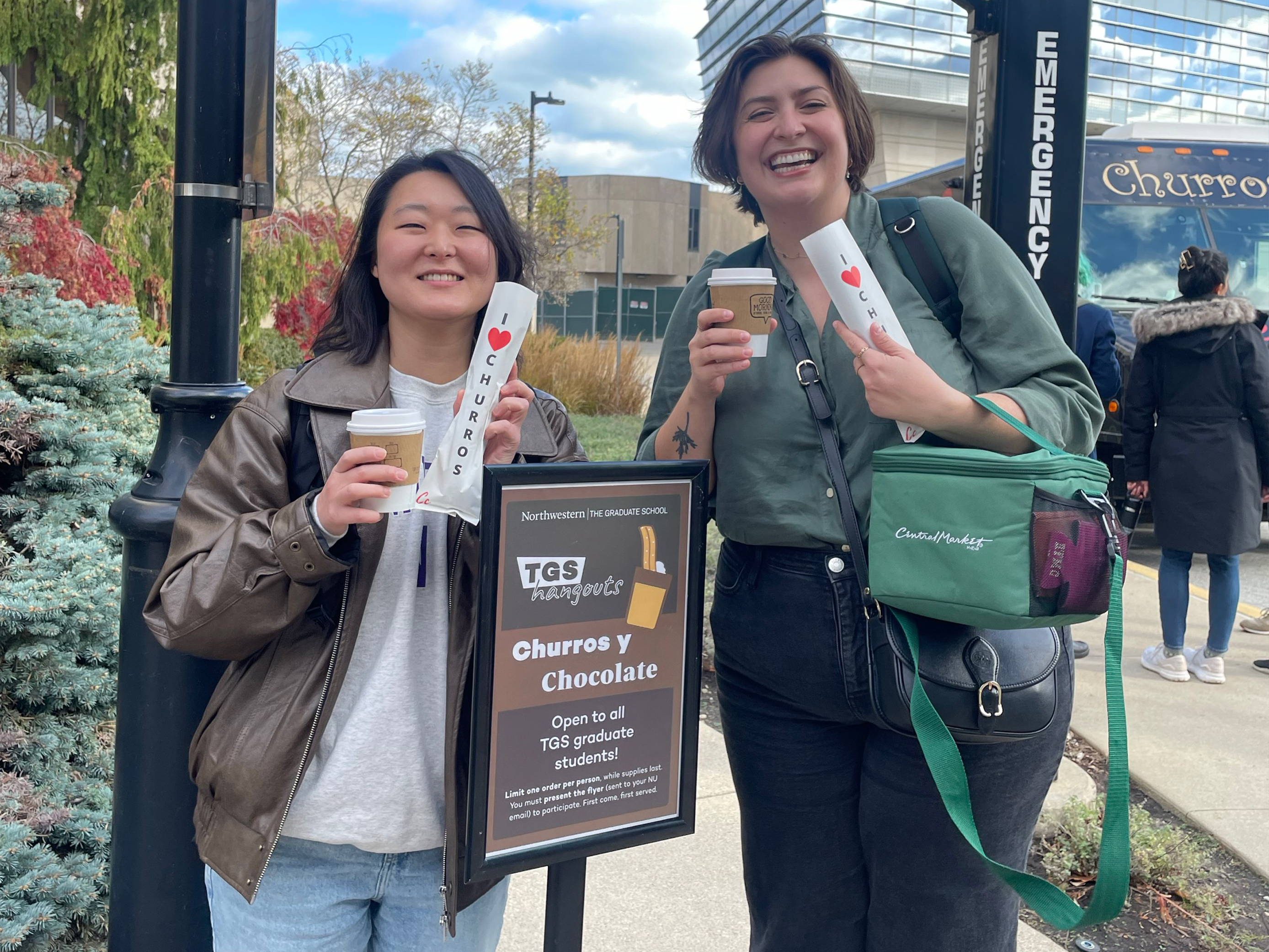 Tuesday, November 19, 2024 from 1:00–3:00 PM at the Block Museum Plaza (Arts Circle Drive) on the Evanston campus.TGS students were able to enjoy a free churro and a hot chocolate on us! Students had to present this flyer on your phone to participate. First come, first served. Limit one order per person, while supplies last.